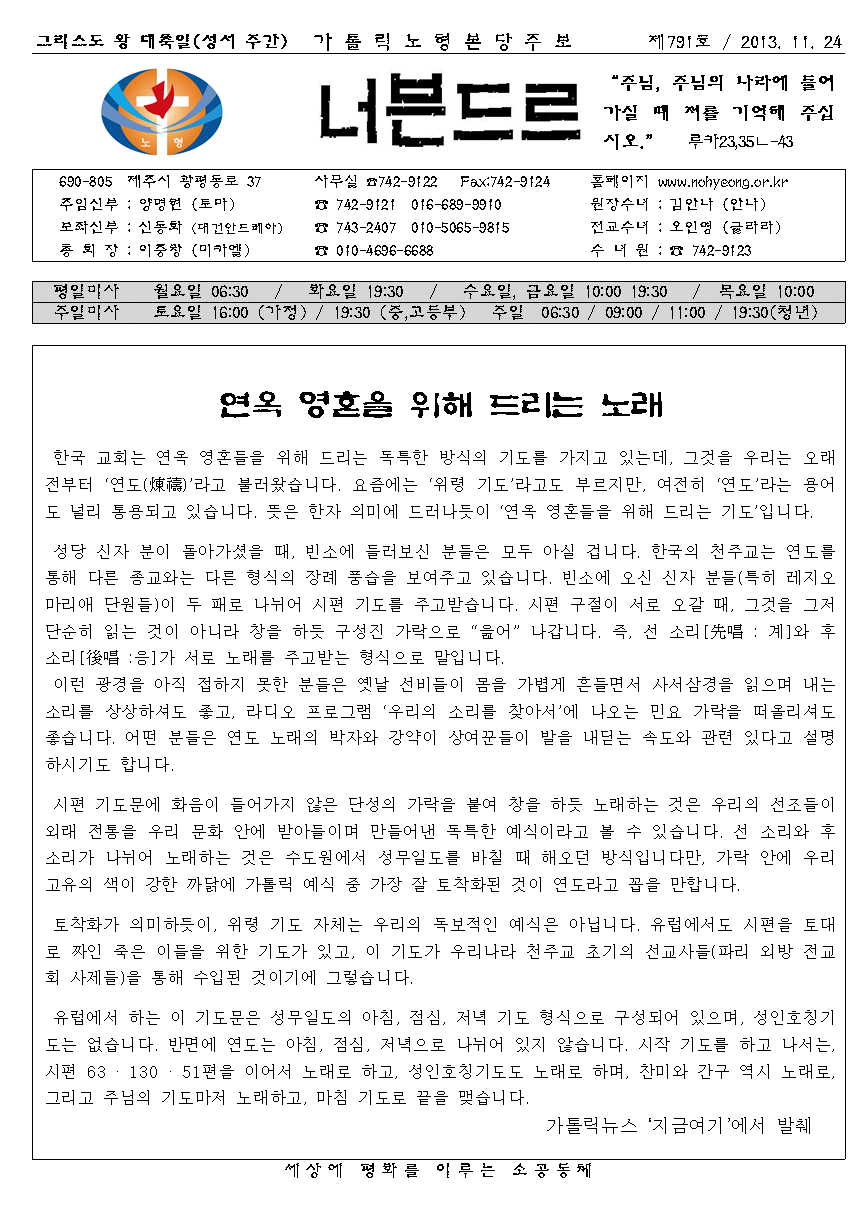 너븐드르 제 791호 2013.11.24 그리스도왕대축일(성서주간)