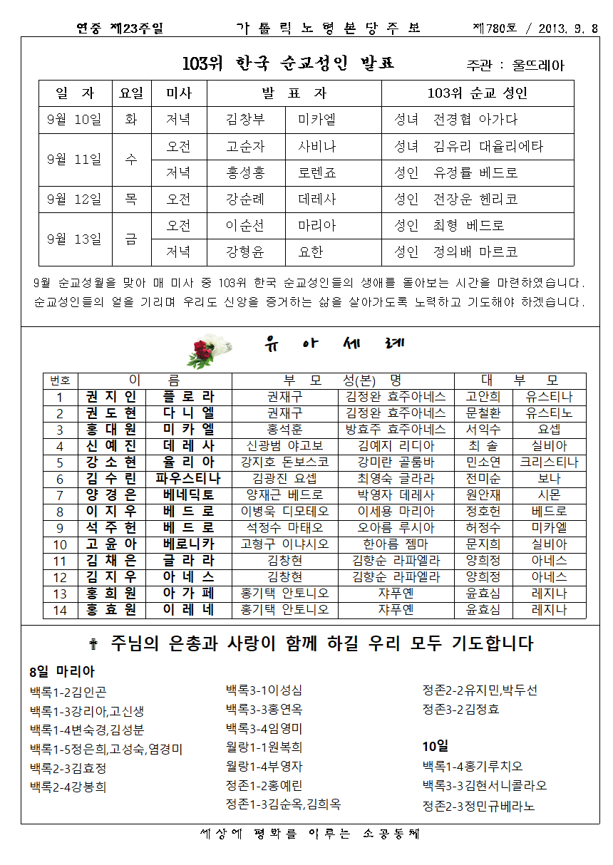 너븐드르 제 780호 2013.9.8 연중제23주일